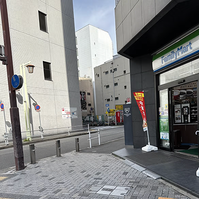 4.ファミリーマート名駅三丁目店を右手に見ながら、中村郡道に沿って進みます。 -