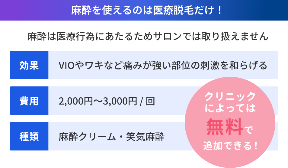 ▶ 関連記事:医療脱毛の麻酔とは?痛みを軽減する種類と効果