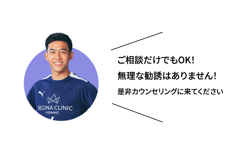 当院では男性および女性の看護師が在籍しております。そのため、対応する看護師は女性の場合もございます。いずれの性別の看護師であっても、高い専門性と安全な施術を提供させていただくのでご安心くださいませ。